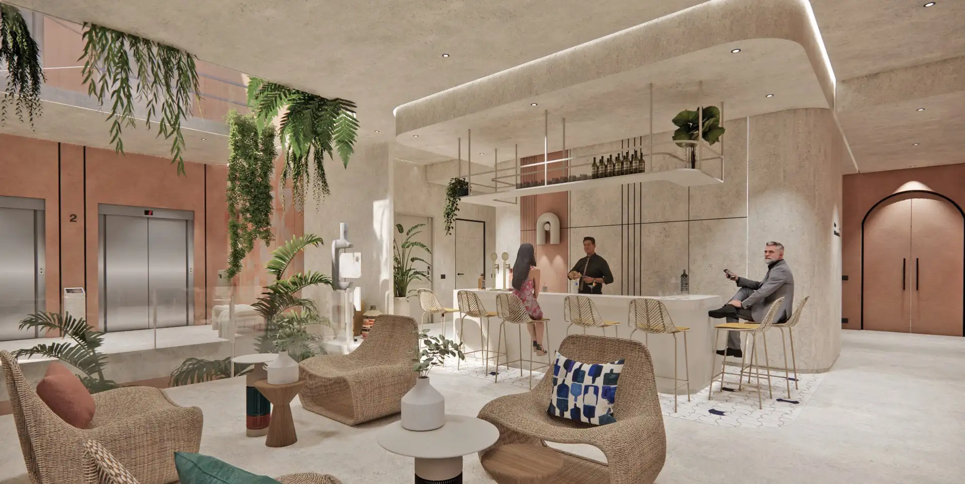 Los huéspedes son recibidos por un vestíbulo que es una fusión de arte moderno y elementos tradicionales. Instalaciones artísticas y mobiliario diseñado por artistas locales crean un ambiente acogedor y estimulante.